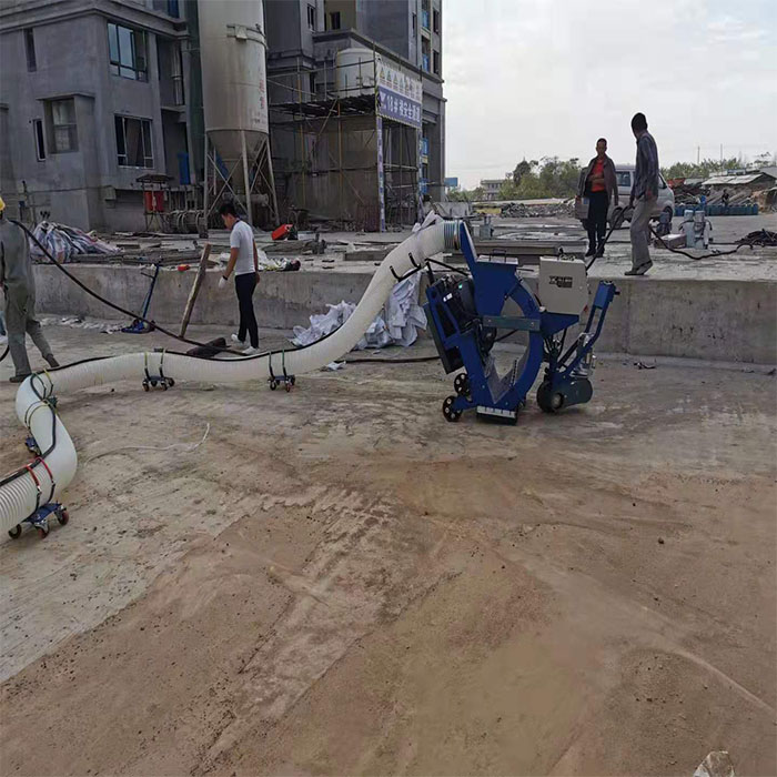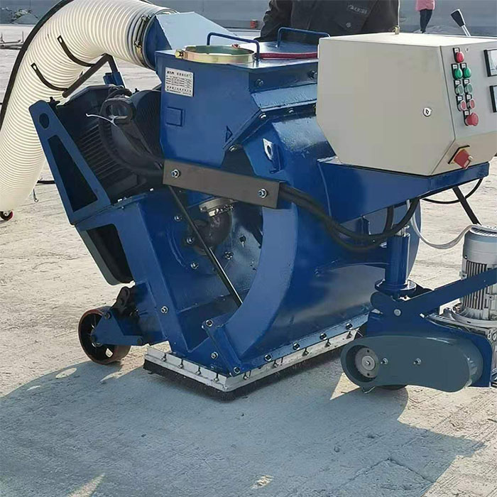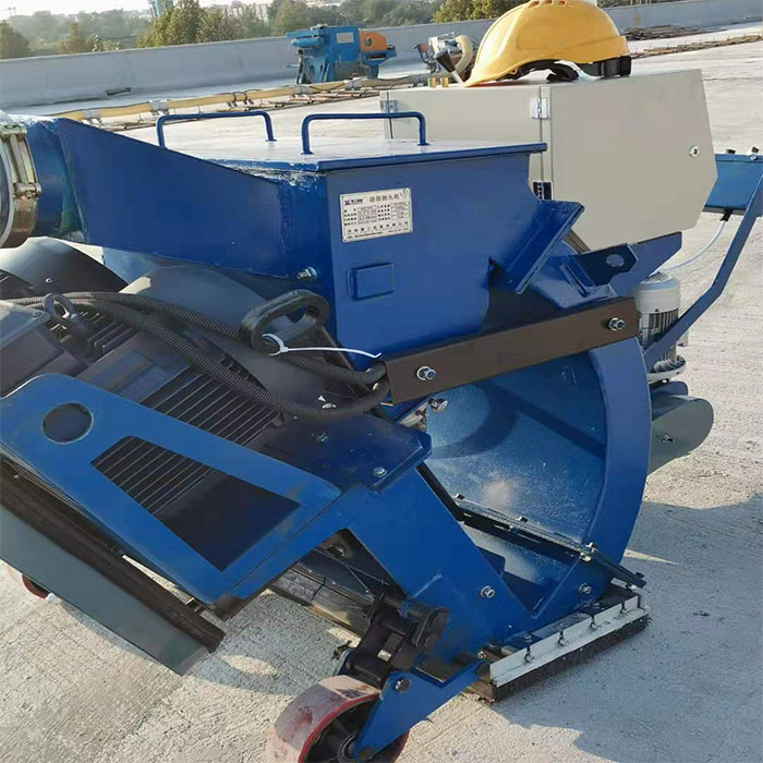 路面拋丸機(jī)能夠一次將混凝土的表面浮漿、雜質(zhì)清理,并且可以對混凝土的表面進(jìn)行打毛處理,使其表面均勻粗糙,大大了防水層和混凝土基層的黏著強(qiáng)度,以便防水層和橋面更好的結(jié)合,同時也能夠?qū)⒒炷恋牧鸭y充來,起到防患于未然的作用。