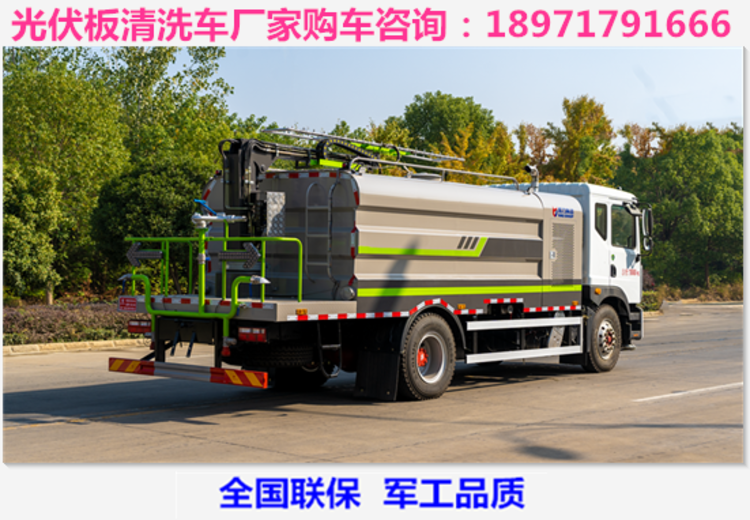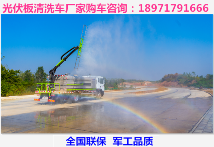 適用于太陽能光伏板清洗、墻面清洗、隧道墻壁清洗,園林綠化。40個大流量噴嘴,可以清除光伏板、隧道墻面的灰塵,清洗高度達5.5米,后平臺液壓式360°旋轉(zhuǎn)臂噴水架可根據(jù)角度靈活調(diào)整,同時具備灑水車的各項功能(前沖后側(cè)側(cè)噴)自吸自排帶消防接口