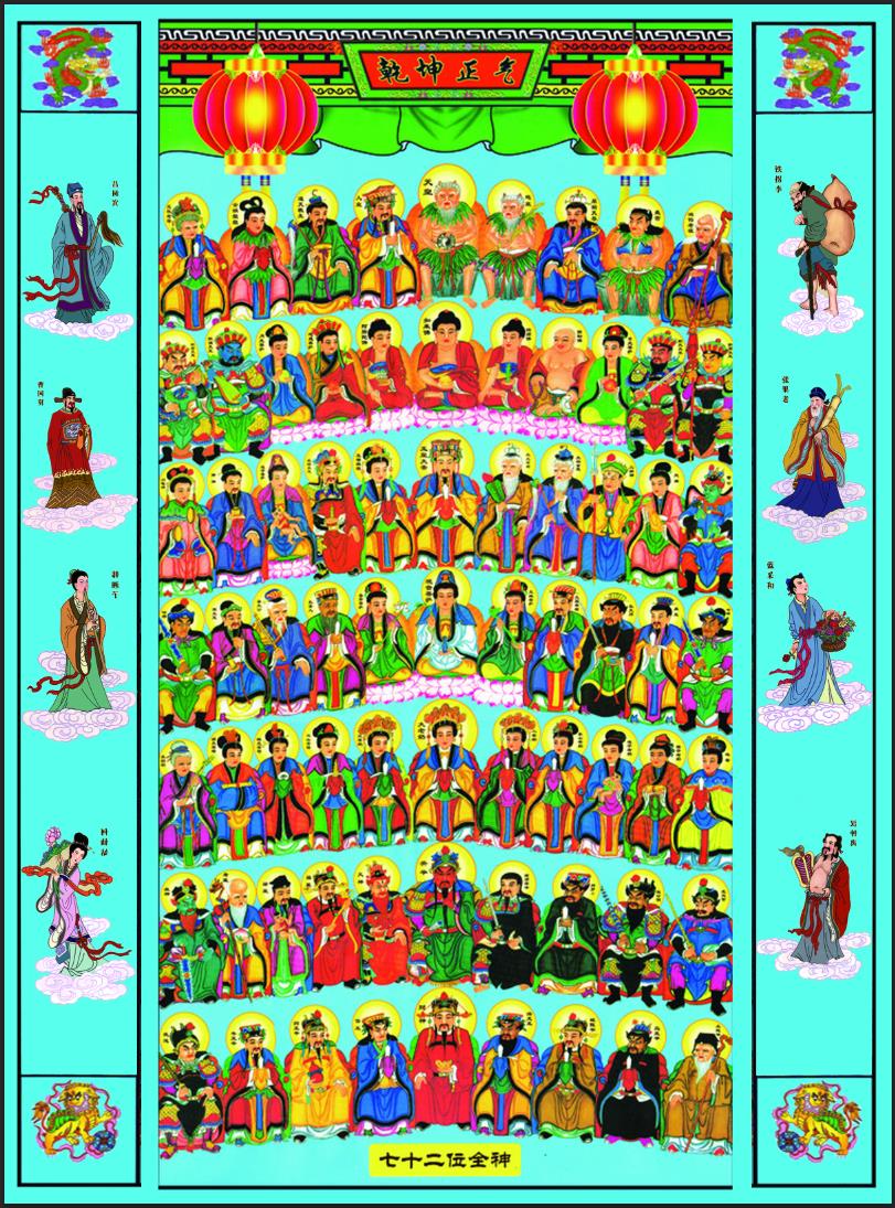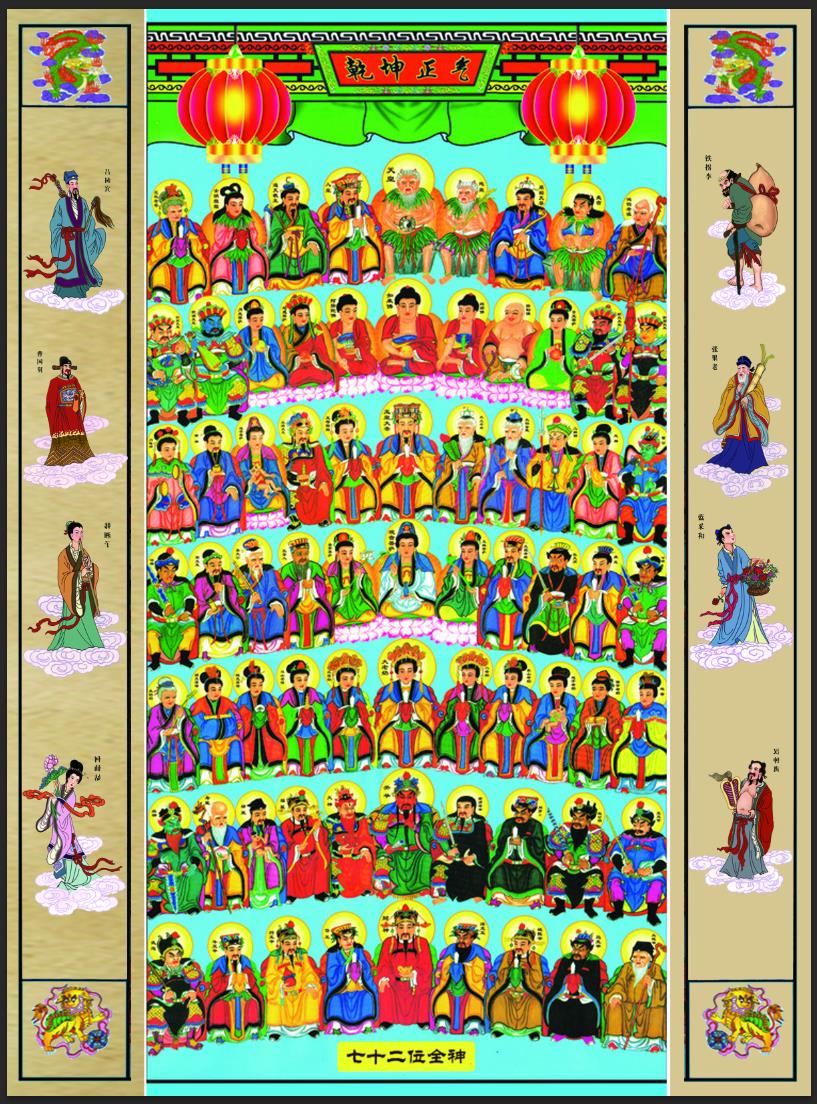 全神像掛像,寺廟道觀背景墻壁畫,道教神像畫,佛像畫 |
