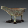 提梁壺,因?yàn)槌鲇谏讨苣甏?,特別被業(yè)內(nèi)看重,是我國目前有,業(yè)界看重提梁壺,還有一個(gè)原因,即此壺帶有一定的神秘。有考古者認(rèn)為,此壺應(yīng)是供商周時(shí)期的作品,也有可能是因?yàn)樽鳛橄略崞?,一般都?huì)選取當(dāng)時(shí)的名人名品。而另一種觀點(diǎn)認(rèn)為,磚刻墓志與壺上都沒有寫明此壺制作者。商周時(shí)期的青銅器,除了紋飾不少采用首、禽形象外,在造型上也往往直接以某些獸或禽的形象為基本器形。這種情形在商周青銅器時(shí)期為常見和典型,時(shí)至春秋及其以后,逐漸便減少了乃至不用了。因此,在某種程度上說,只要是以獸或禽為基本器形的青銅器,基本上就可以推定其為商周時(shí)期之造物(當(dāng)然也要具體問題具體分析,通過辨識(shí)其風(fēng)格、鑄相、銹相等其它能反映時(shí)代特征的鑒點(diǎn)為據(jù))。故,今日所展賞的便是愚帳中所藏的這樣一件,既十分,又以禽為基本器物造型的青銅器類別的,通過鑒賞分析,我們不僅可以確定其到代與否,還可以領(lǐng)略到其的美器風(fēng)貌。