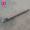 用提砂筒撈取砂卵石等的工具有提引接頭、加重桿、活接頭、提砂筒。在砂層和卵石層鉆進時需要下套管,以保護孔壁防止塌孔。一般用成套自由鉗和鏈條鉗人力往復推轉隨沖擊進尺而往下伸進。