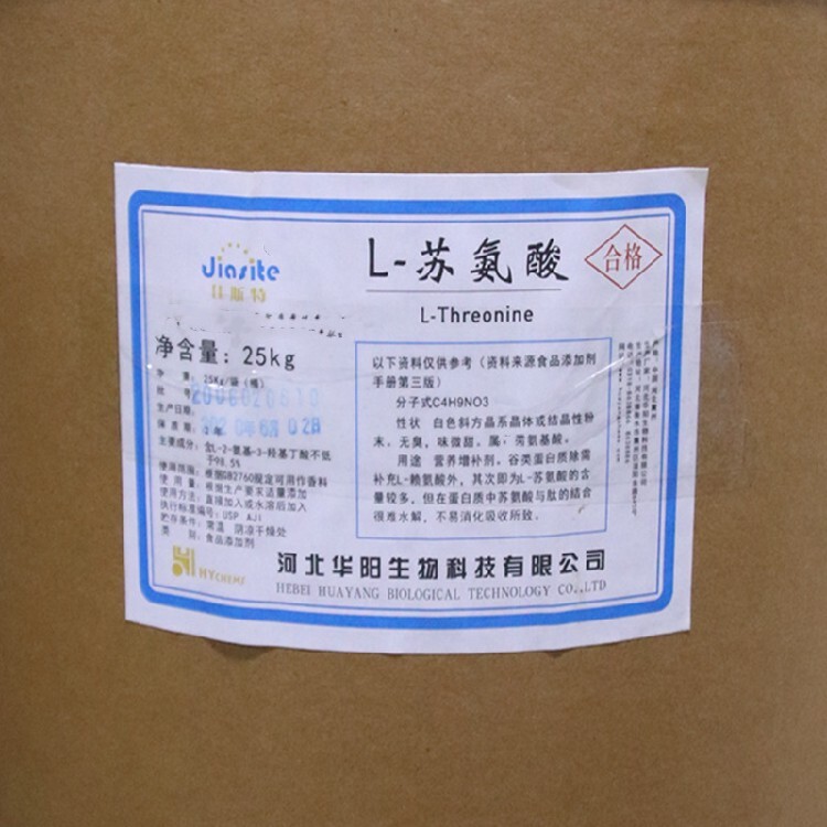 2.作飼料營養(yǎng)強(qiáng)化劑,蘇氨酸是一種必需的氨基酸。蘇氨酸常添加到未成年仔豬和家禽的飼料中,是豬飼料的第二限制氨基酸和家禽飼料的第三限制氨基酸。添加于以小麥,大麥等谷物為主的飼料中。