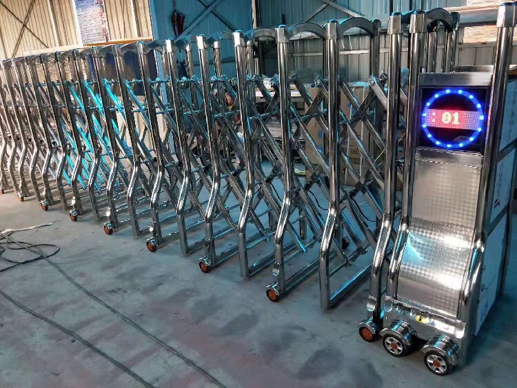 伸縮門體:伸縮門體是由門體大框、交叉撐、軸(定軸、滑軸)及門體輪等主要部件組成。門體整體為金屬結構,按材質又分為不銹鋼門體、鋁合金門體、壓鑄鋁門體。