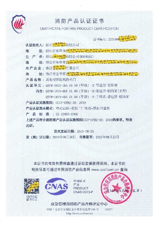 防火門出廠要求:取得產(chǎn)品型式檢驗(yàn)報(bào)告和消防產(chǎn)品認(rèn)證證書后,方可申請(qǐng)消防產(chǎn)品身份標(biāo)識(shí)碼,每樘門出廠時(shí)均需張貼身份標(biāo)識(shí)碼才算是合格的防火門。