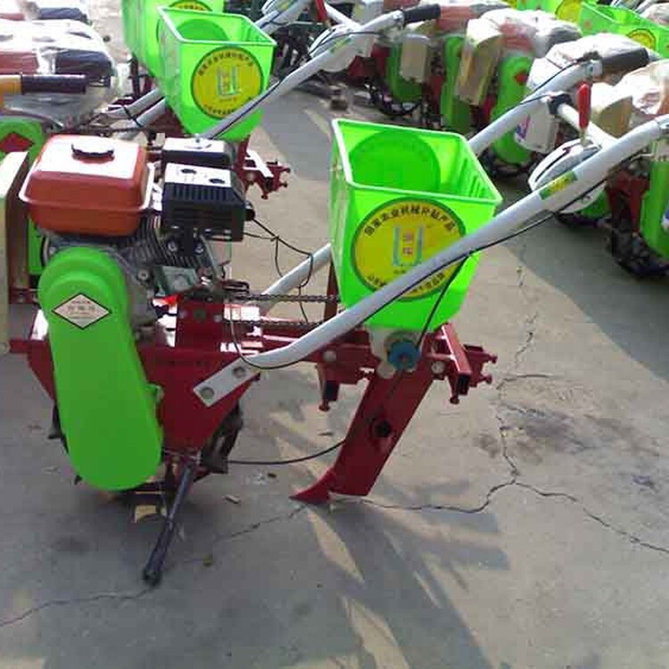 該機(jī)與拖拉機(jī)配套作業(yè),主要用于未耕或已耕地單粒精播玉米,可條施晶粒狀化肥,一次完成開溝施肥、開種溝、播種、覆土、鎮(zhèn)壓等工序。播種總成立仿形設(shè)計(jì), 每行播種深度一致。機(jī)具懸掛為可調(diào)式,通過調(diào)整可與中、大拖拉機(jī)配套。播種開溝器做了“瘦身”處理,減小開溝尖尺寸,降低阻力。仿形輪增加了刮土板,解決了因仿形輪粘泥后造成的播種深度變小問題。安全施肥開溝器,作業(yè)中當(dāng)開溝器遇到大塊石頭或樹根即將變形或裂開時,彈簧保護(hù)裝置立即脫開,避開損壞。龍鈺機(jī)械汽油播種施肥機(jī) 多用途蠶豆汽油播種機(jī)易啟動,輕便。整體板設(shè)計(jì),一次成型,堅(jiān)固。加粗手把。人性化的手油門設(shè)計(jì)。