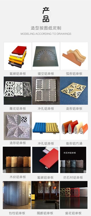 雕刻鏤空鋁單板雕刻好后可根據(jù)客戶要求做不同的形狀及表面處理,可制作成包柱弧形鏤空板、波浪形吊頂造型鏤空鋁天花、任意角度折彎等。