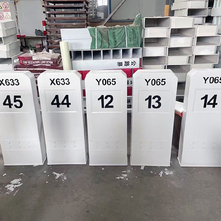 玻璃鋼百米樁是是采用玻璃纖維為增強材料,以合成樹脂為基材一次拉擠成型的復合材料百米樁。 玻璃鋼百米樁采用進口油墨,絲網(wǎng)印刷,標志字模和危險提醒符號,字體圖案清晰美觀,而且不易脫落,節(jié)約大量的維護成本和人力成本費用。玻璃鋼百米樁材質(zhì)中加入防老化劑、抗紫外光劑,延緩其老化過程,因此玻璃鋼百米樁有、能力,***指標達三級以上,使用年限長達30年以上。百米樁采用化工復合材料制成,無二次利用價值,具有二次防盜特性。玻璃百米樁外形屬于方管型,管內(nèi)是空心,此材質(zhì)的