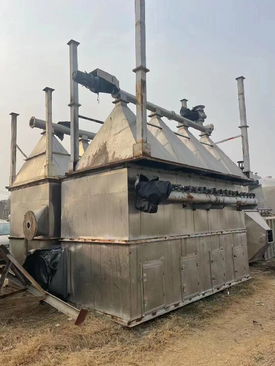 二手閃蒸干燥機(jī)主要由進(jìn)風(fēng)系統(tǒng)、加熱系統(tǒng)、加料系統(tǒng)、干燥主機(jī)、收料除塵系統(tǒng)、排風(fēng)系統(tǒng)、控制系統(tǒng)等組成。工作時(shí),濕物料由螺旋加料器進(jìn)入干燥室,物料在干燥室中與高速旋轉(zhuǎn)的熱風(fēng)相遇,細(xì)粉狀物料被熱風(fēng)帶著向干燥室上端移動(dòng),不能帶走的物料落在干燥室底部,被底部的粉碎裝置打碎,物料被迅速分散,物料與熱風(fēng)的接觸面積迅速。