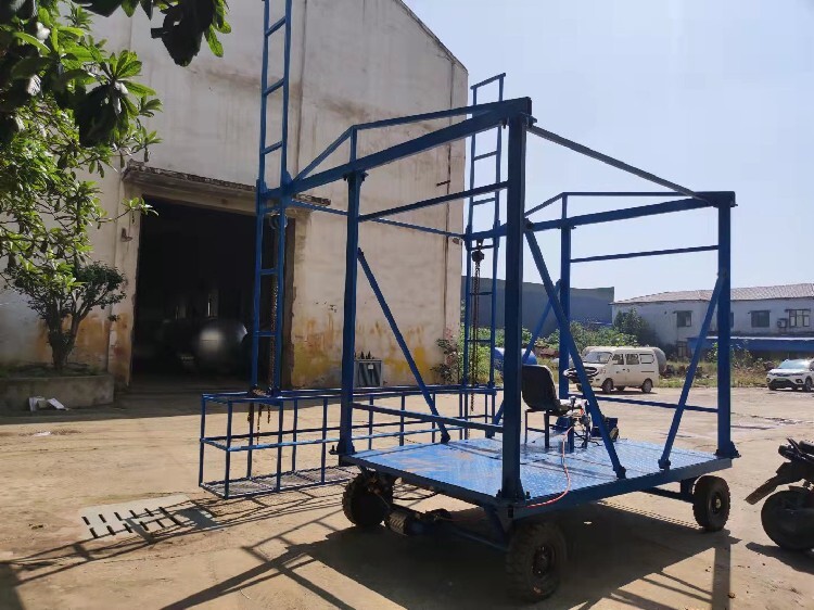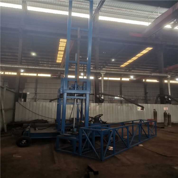 5)其操作平臺(tái)即可垂直提升,又可平行移動(dòng),橋梁同跨間相對(duì)應(yīng)點(diǎn)位施工,可用雙車抬著操作平臺(tái),從一個(gè)點(diǎn)位平行移到對(duì)應(yīng)點(diǎn)位。