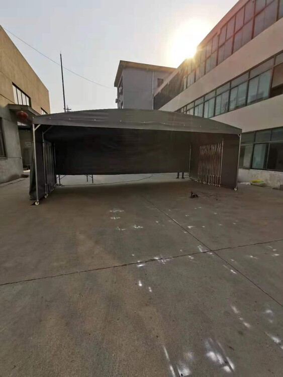 遮陽雨篷是采用卷取方式使軟性材質(zhì)的簾布向下傾斜與小平面夾角在0°~15°范圍內(nèi)伸展、收回的遮陽裝置,是優(yōu)良的外遮陽制品。