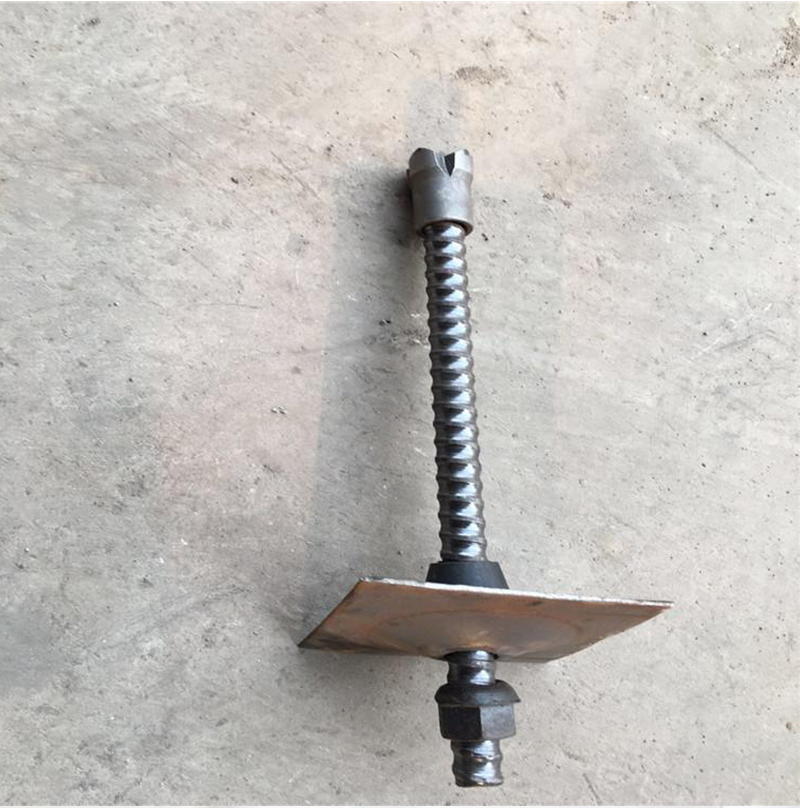 (1)錨桿鉆孔機(jī)鉆孔 使用HD110Z 潛孔鉆床鉆孔,鉆孔中注意鉆桿角度垂直巖面。 (2)錨桿部件和組裝 (3)制作注漿連接接頭連接接頭主要作用是連接錨桿孔和注漿管道,使用錨桿螺母、鋼管和球閥等部件加工,注意接頭牢固、焊縫嚴(yán)實(shí),防止漏漿。(4)檢查鉆孔深度 按照規(guī)范要求,錨桿孔的深度應(yīng)大于錨桿長度的250px,如設(shè)計(jì)錨桿長度3.0m,錨桿孔深度應(yīng)為3.1m以上,使用鋼卷尺直接錨桿孔檢查鉆孔深度(5)安裝錨桿 人工將錨桿送入孔中至設(shè)計(jì)位置,注意錨頭與錨桿要連接牢固。(6)錨桿安裝到位 止?jié){塞要完全錨桿孔中,防止注漿中漏漿(7)注漿設(shè)備就位 注漿設(shè)備主要包括注漿泵和攪拌機(jī),就位后檢查水、電、管道連接情況,為注漿做好工作。采用注漿流量計(jì)進(jìn)行注漿量控制。 (8)連結(jié)注漿管接頭 將注漿管接頭與錨桿外露部分連接,上緊螺絲,打開閥門。(9)攪拌注漿材料 按照試驗(yàn)配合比攪拌注漿材料,控制攪拌時(shí)間,砂漿稠度注漿要求。(10)開始注漿 要控制注漿中壓力表讀數(shù)在0.2~0.4MPa之間,達(dá)到0.2MPa開始注漿(11)排氣管出漿,注漿結(jié)束 注漿要密切關(guān)注排氣管情況,當(dāng)排氣管均勻冒漿時(shí)注漿結(jié)束,關(guān)閉閥門、停機(jī),進(jìn)行下一個(gè)錨桿注漿。(12)安裝墊板、螺母 漿液強(qiáng)度達(dá)到設(shè)計(jì)強(qiáng)度的70%時(shí)安裝墊板和螺母,注意墊板與初支面密貼,螺母擰緊。(13)錨桿外露部分處理 安裝螺母后的錨桿尾部外露部分不得大于5mm,多余部分要割除,用砂漿抹平順或者用混凝土噴平順,初期支護(hù)表面平整度的要求。 (14)錨桿安裝整體效果圖 錨桿單價(jià) 中空錨桿管