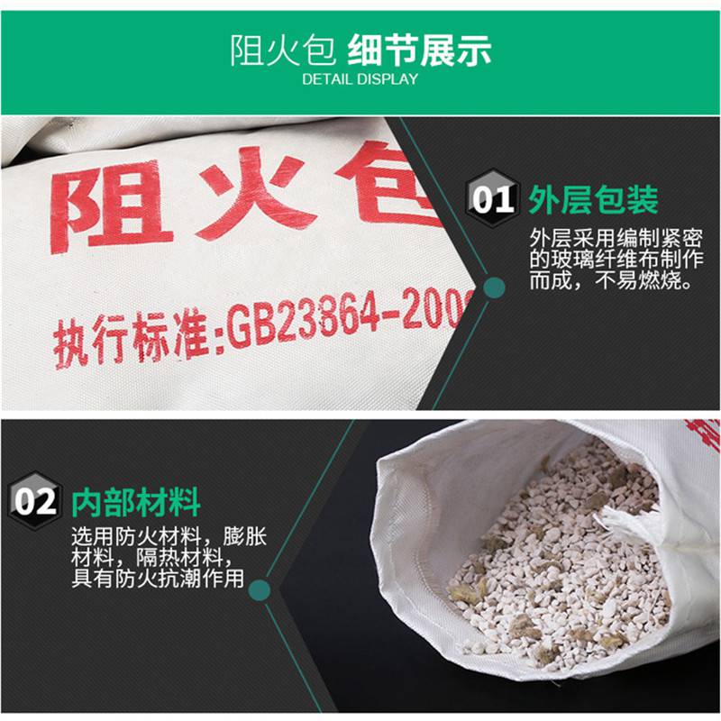1、阻火包用塑料袋附防火布袋,再用編織袋包裝,儲存在陰涼干燥處。
