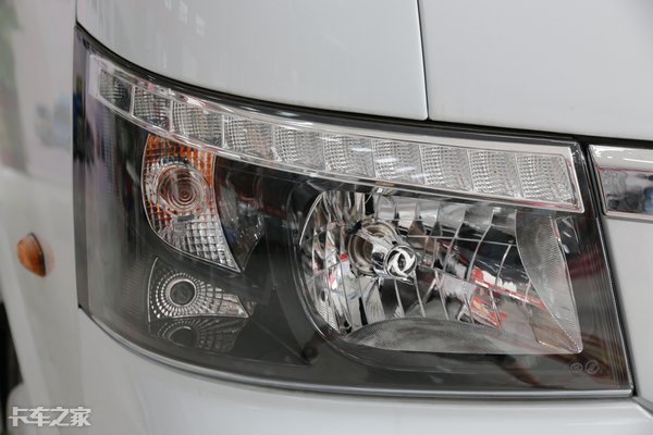 大燈燈組集成設(shè)計了遠(yuǎn)近光燈、轉(zhuǎn)向燈、日行燈,燈組內(nèi)采用了黑色的殼體,這也正是近幾年商用車中比較流行的熏黑設(shè)計。