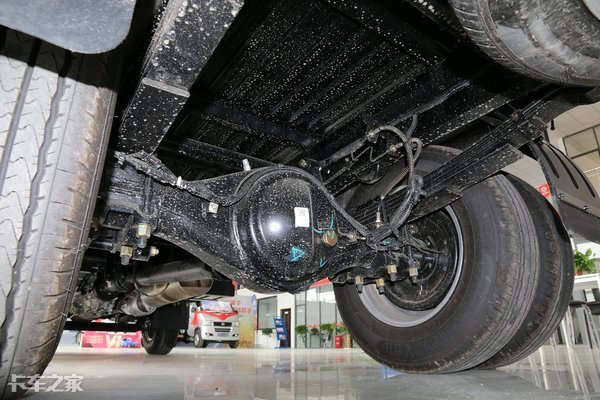 后橋采用的是3噸級后橋,后橋速比為5.833,搭配5片加厚型鋼板彈簧,板簧厚12mm,寬為70mm,可以整車有出色的承載力。