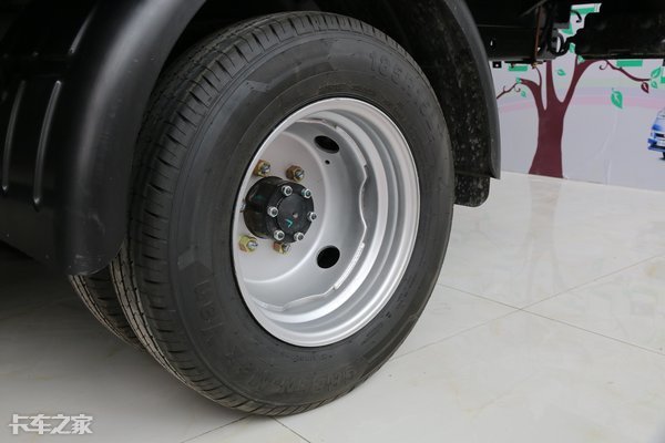 輪胎規(guī)格為185R15LT,并且后軸采用的雙胎設(shè)計,承載力更強。