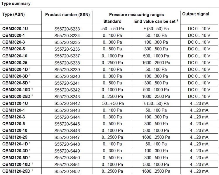 西門子SIEMENSQBM4000-10QBM4100-1UQBM4100-1D差壓傳感器差壓傳感器