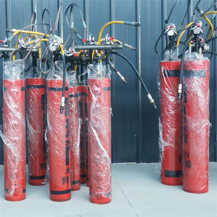 它是由一條油缸,11個(gè)活塞,多個(gè)密封件,多根高壓油管幾大部件組成。分為一根進(jìn)油管,一根回油管。進(jìn)油時(shí)液壓破石棒的活塞會(huì)伸出,這就是一個(gè)工作過(guò)程,也就是巖石破裂的時(shí)間。它的動(dòng)力源是由液壓動(dòng)力站通過(guò)油管傳輸液壓油,可達(dá)到100mp,理論分裂力1200t.單根30kj,一個(gè)動(dòng)力站大可高配6根。標(biāo)配是4根。