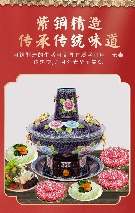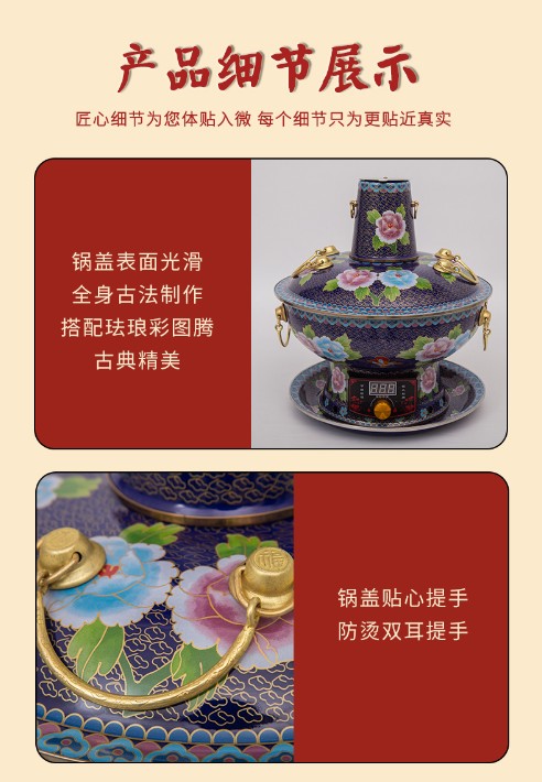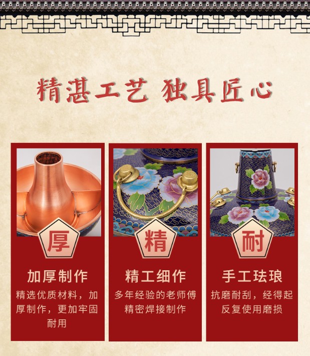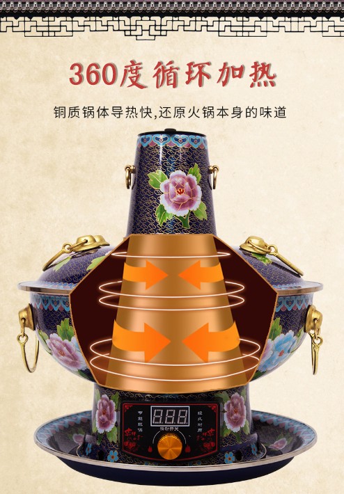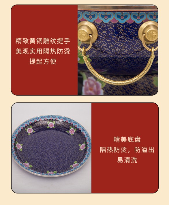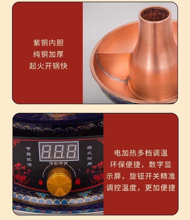 景泰藍(lán)插電銅火鍋 純銅火鍋 加厚老式銅火鍋 景泰藍(lán)銅火鍋
