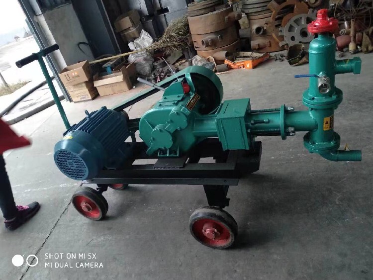 操作維護容易,運行性能可靠。.體積小,重量輕,動力與工作裝置安裝于同一底座上運輸安裝方便。泥漿泵工作原理,泥漿泵為雙缸單作用往復柱塞式泵。電動機通過三角皮帶,軸。泥漿泵產(chǎn)品特點.結(jié)構(gòu)簡單偏心盤及連桿帶動柱塞做往復運動。柱塞每往復一次活塞前后兩組進排漿閥各完成一次進,排漿動作。煤礦用泥漿泵新疆BW50/3小型注漿泵