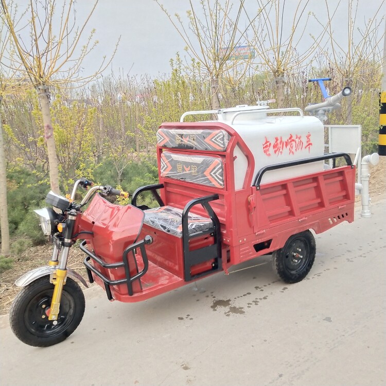 瑞隆環(huán)保研發(fā)出新型一種使用靈活方便、省時(shí)省力、節(jié)能環(huán)保的電動(dòng)消毒殺菌車,該消素殺菌車具有噴灑均勻、噴灑面積廣的特點(diǎn)。谷蘭電動(dòng)消毒車設(shè)計(jì)包括電動(dòng)車架底盤、車頭和前車輪及側(cè)車輪,電動(dòng)車架本體前部設(shè)置有座椅,后部加裝罐體,座椅內(nèi)設(shè)置有供電裝置,側(cè)車輪上設(shè)置有動(dòng)力裝置,座椅前的三輪車架本體上設(shè)置有腳剎,座椅的一側(cè)邊設(shè)置有手剎把,供電裝置和動(dòng)力裝置均經(jīng)導(dǎo)線與剎車裝置腳剎和手剎把相連接,所述的儲(chǔ)液箱的后方設(shè)置有抽水泵,儲(chǔ)液箱側(cè)壁上設(shè)置有卷管裝置,出水管一端設(shè)置在儲(chǔ)液箱的底部并與抽水泵的出口相連接,另一端經(jīng)卷管裝置伸出儲(chǔ)液箱外部,伸出儲(chǔ)液箱外部的出水管連接一膠管,膠管經(jīng)噴水開關(guān)與噴水管相連接;所述的儲(chǔ)液箱的頂部設(shè)置有進(jìn)液口,進(jìn)液口上設(shè)置有上蓋。另外,也可加裝霧炮機(jī),在消毒的同時(shí)起到凈化空氣和降塵除塵的作用。