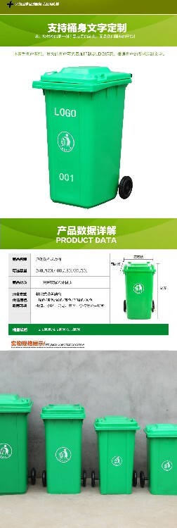 開合方式:密封帶蓋結(jié)構(gòu)??蛇x容量:100L、120L、 120L掛車、240L、240L掛車、240L加厚掛車、 240L特厚掛車。顏色分類灰色、藍(lán)色、綠色、紅色、黃色