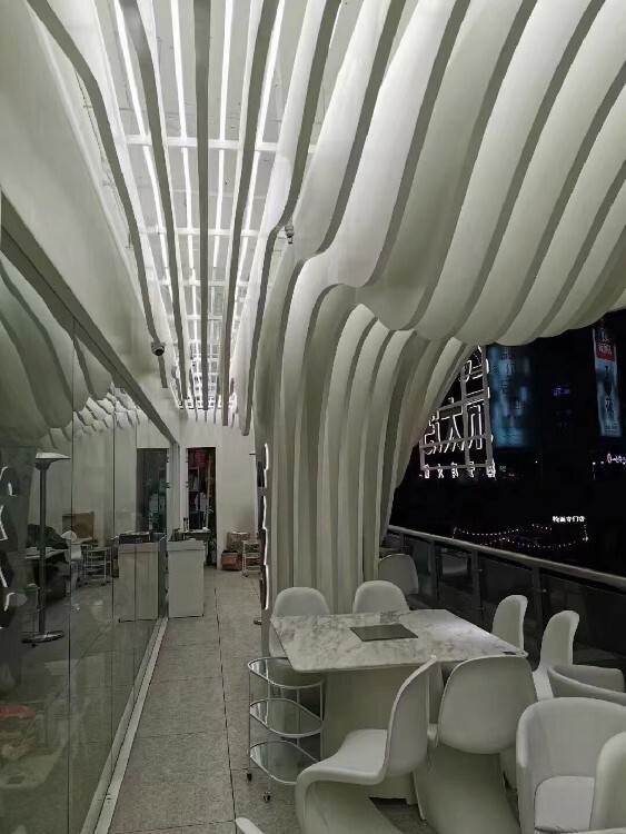 鋁方通的裝飾性很強,不同的弧度線條,不同的色彩選擇,不同的疏密搭配,常常能裝飾出不同的設(shè)計效果。