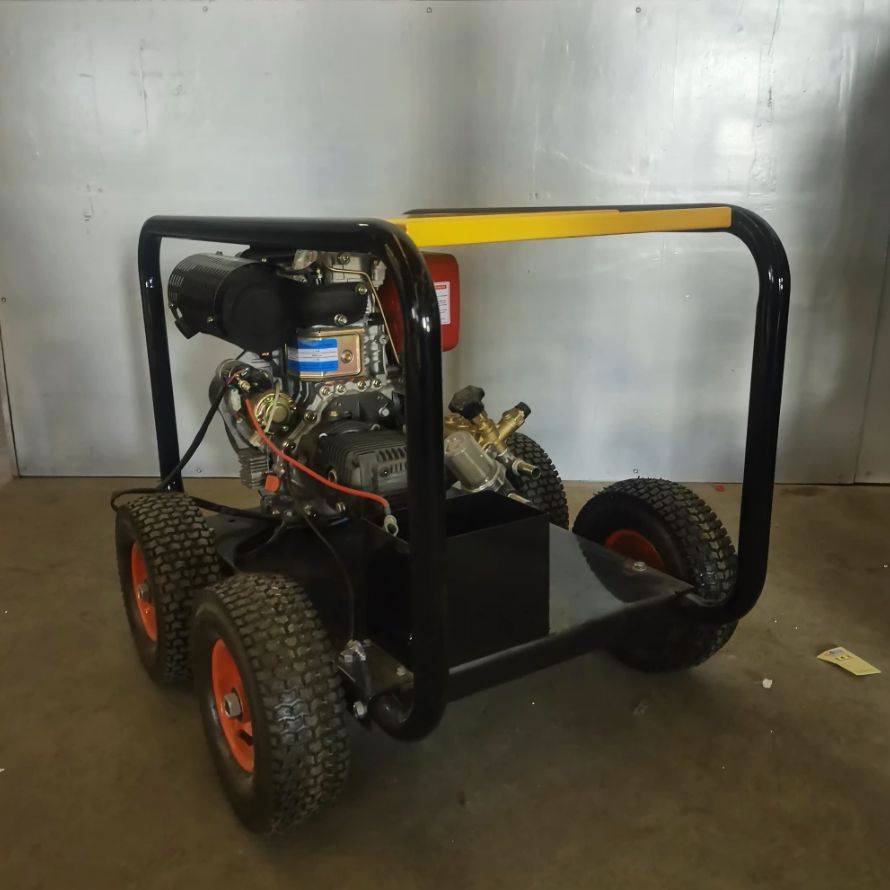 管道疏通機又叫下水道疏通清洗機,是屬于高壓清洗機的一種,其特點是中等壓力,大流量,采用高壓水沖洗的方式進行疏通清洗。下水道疏通機采用汽油、柴油或者電動為助力,配備進口AR品牌泵,提供水升壓的方式,將普通自來水轉(zhuǎn)變?yōu)楦邏捍罅髁克?,配合疏通管和疏通老鼠頭的工作,將管道內(nèi)部的污垢清洗,及管道堵塞疏通。