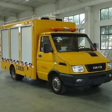 駕駛室頂部安裝 2 個圓警燈;車身左右上部各有三個長方形頻閃警燈;駕駛室