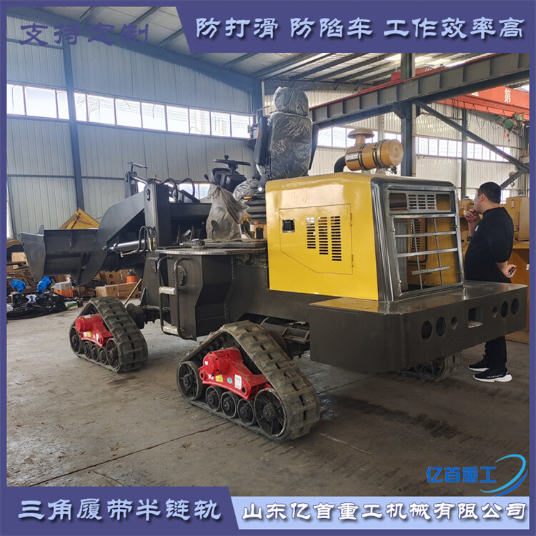 三角半鏈軌相比傳統(tǒng)輪胎,與地面的接觸面積大幅增加。以常見的中型鏟車改裝為例,改裝后接觸面積可擴大。這使得單位面積所承受的壓力顯著降低,在泥濘、沙地等松軟地面上,鏟車能夠避免下陷,保持良好的行駛和作業(yè)穩(wěn)定性。例如在濕地清淤工程中,改裝后的鏟車能夠輕松穿梭于淤泥地帶,而普通輪胎鏟車則易陷入其中無法自拔。