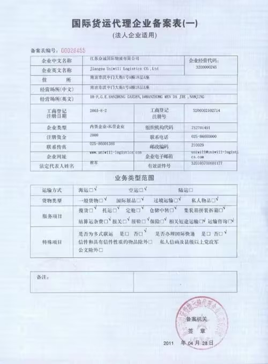 1. 公司注冊:申請人是一家合法注冊的貨運公司或者貨運代理公司。