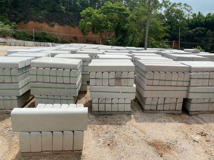 路緣石上層采用普通混凝土,其不透水性可以避免路面雨水倒灌至路面結(jié)構(gòu)內(nèi),同時使得面層具有較強的結(jié)構(gòu)強度;下層采用多孔混凝土,形成透水層,可以使路面結(jié)構(gòu)內(nèi)的水通過該透水層得到順暢外排(通常道路同一橫斷面,路中要兩邊,路面結(jié)構(gòu)內(nèi)部水,在重力作用下向兩側(cè)流動,到達路面邊即進入緣石的多孔混凝土層排出)。