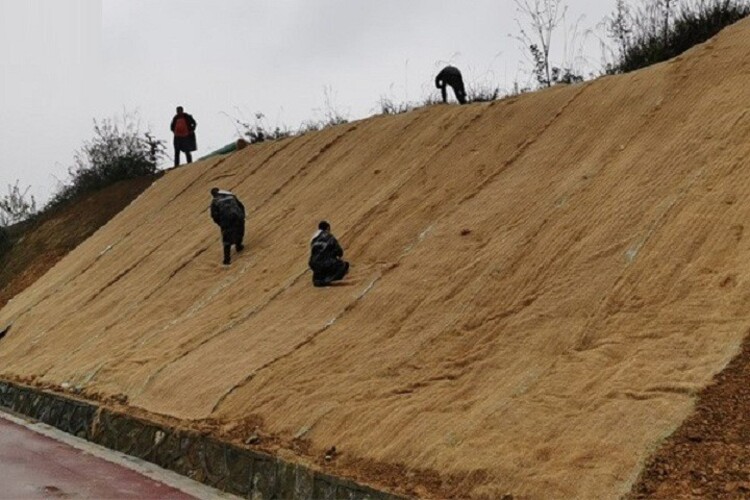 護坡生態(tài)草毯使用的特性:1.護坡草毯可以固定在任意角度的坡面上,可以根據(jù)施工的要求隨意的改變形狀,進行裁剪在拼接。2.護坡草毯施工方便快捷,相對于傳統(tǒng)的水泥砂漿、石頭護坡造價低,既節(jié)約了成本,又縮短了工期,植物纖維降解以后還涵養(yǎng)土壤。