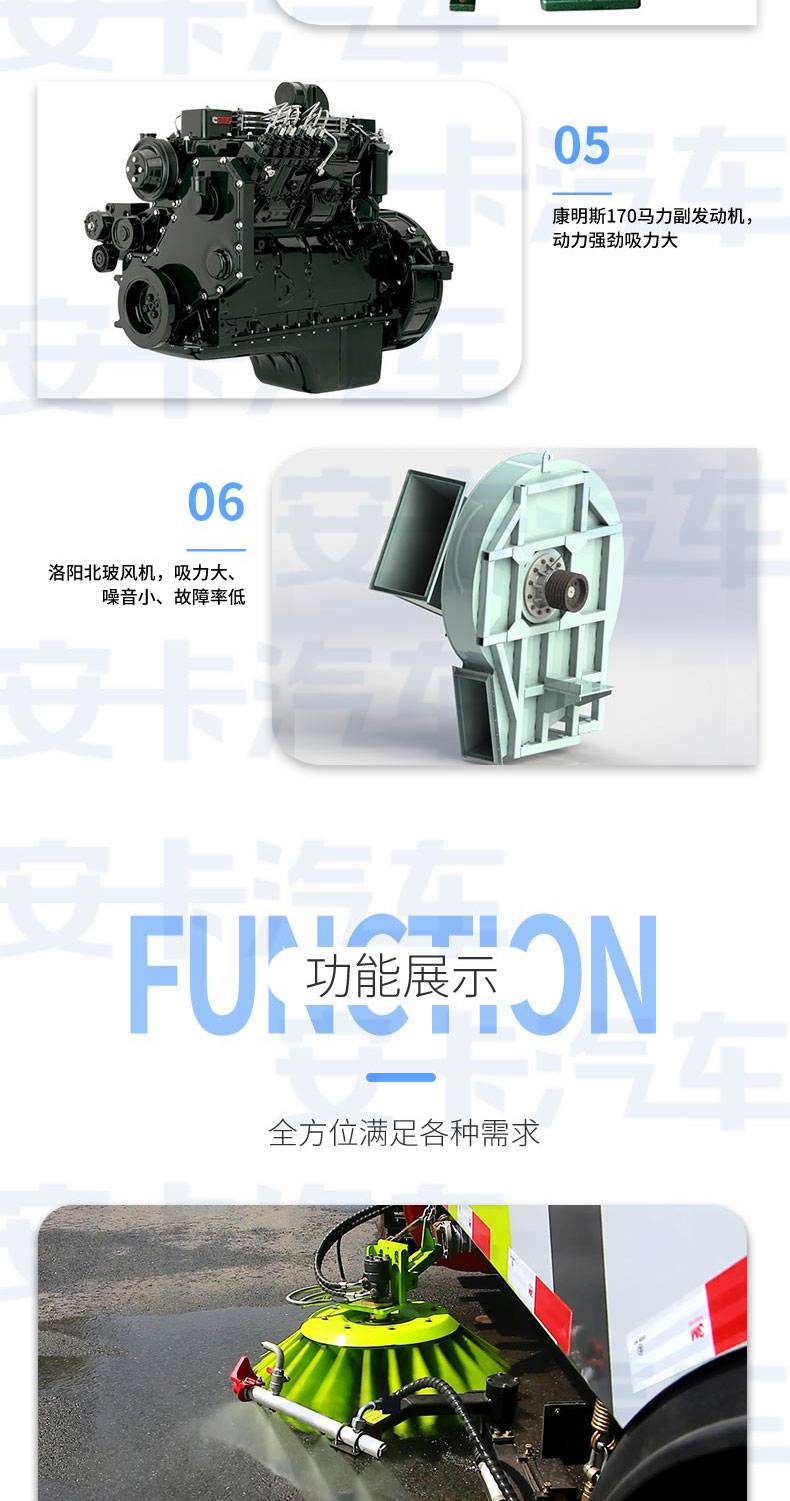 帶2個中置掃盤,康明斯170馬力副發(fā)動機;美國伊頓馬達;德國高壓水泵(前沖/側(cè)噴/中噴/后噴霧(不銹鋼噴嘴)/側(cè)沖洗水槍/垃圾箱自潔裝置);萬向高壓路沿清洗;中外合資液壓閥組;威龍低壓泵(前沖);4mm不銹鋼垃圾箱;4mm不銹鋼水箱;不銹鋼高壓管路;雙層不銹鋼吸塵筒;德國控制器;美國傳感器;尾部箭頭燈;機油、垃圾箱、水箱均帶防溢或低位報警裝置;倒車及洗掃狀態(tài)室內(nèi)監(jiān)視器;倒車防撞自動保護裝置;檢修安全保護裝置;掃刷臂轉(zhuǎn)動機構(gòu)使用高新耐磨工程隔套,免打黃油;20m高壓沖洗卷盤。集成式運動控制器,一鍵電腦控制。