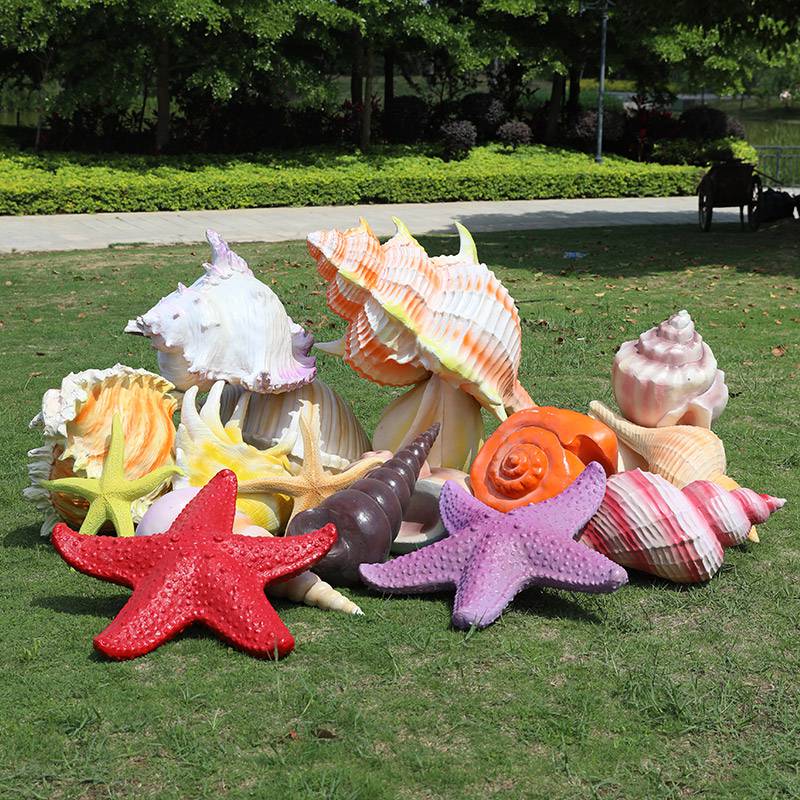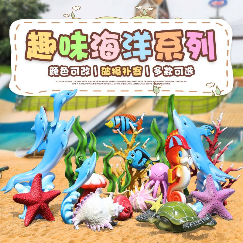 珊瑚貝殼海草海豚雕塑擺件戶外玻璃鋼園林景觀花園庭院水景裝飾品