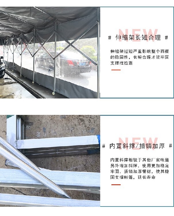 電動推拉篷內(nèi)部采用Φ38鍍鋅圓管與車棚框架焊接,加強棚頂部強度,可讓棚內(nèi)感覺寬敞明亮,??寇囕v輕松方便,完全符合推拉篷制作要求規(guī)范。