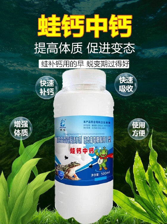 蛙鈣中鈣,含量高,液體鈣,吸收利用率更高,補鈣的同時補充鎂磷等微量元素,補充營養(yǎng),增強體質(zhì),促進(jìn)變態(tài)。
