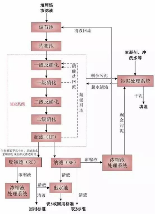 采用特殊設(shè)計(jì)的內(nèi)循環(huán)射流曝氣系統(tǒng),氧利用率可高達(dá)25%。MBR的剩余污泥量小,MBR出水無菌體和懸浮物,進(jìn)入納濾和反滲透系統(tǒng)進(jìn)一步深化處理,出水穩(wěn)定達(dá)標(biāo)排放,濃縮液則回灌至填埋場(chǎng)。納濾和反滲透系統(tǒng)采用特殊納濾膜和工藝設(shè)計(jì),可使鹽隨凈化水排出,不會(huì)出現(xiàn)鹽富積現(xiàn)象,納濾凈化水回收率可達(dá)到85%。為節(jié)省投資及運(yùn)行費(fèi)用可將濃縮液回灌至填埋場(chǎng)處置。