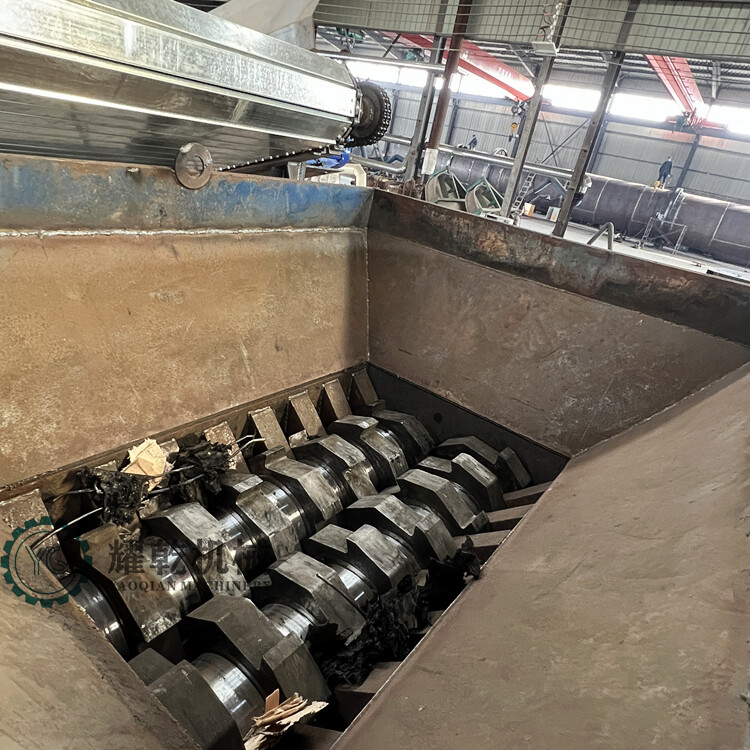 3. 破碎雙輥:雙棍裝有nai磨刀,所有刀盤裝配后,形成螺旋刀,旋轉后,確保每個刀盤均勻受力,雙輥通過扣合確保雙輥刀盤間無大縫隙,通過刀的鉤撓及雙棍間的擠壓實現(xiàn)對木材的破碎;