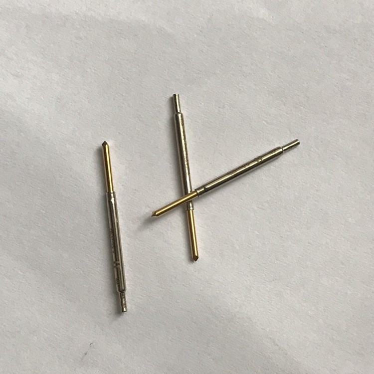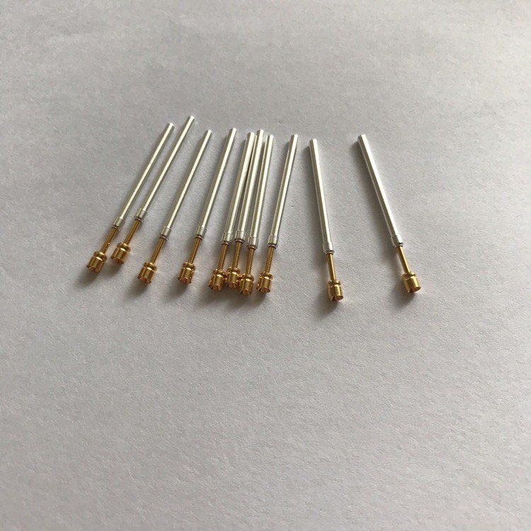探針總長 36.07mm, 針管外徑 3.18mm, 工作行程 4.24mm, 大行程6.35mm. ?針頭和針桿材料為鈹銅, 熱處理, 非常堅(jiān)硬。 表面鍍金。 針管材料是磷青銅, 鍍金, 彈簧是不銹鋼,鍍銀 。球珠是不銹鋼, 鍍金。頭型是齒頭, 頭部外徑3.96mm。