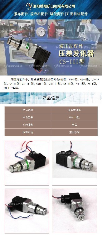 CS-III型壓差發(fā)訊器是一種用于監(jiān)測流體系統(tǒng)中壓力差的設備,通常用于液壓或氣動系統(tǒng)中。它通過檢測兩個不同位置的壓力差,當壓差達到預設值時,會觸發(fā)信號輸出,提醒操作人員或自動控制系統(tǒng)采取相應的措施。包括CS-III型在內(nèi)的CS型壓差發(fā)訊器,通過外接蜂鳴器,在達到發(fā)訊值后會自動發(fā)出鳳鳴聲音報警,并以開關形式自動切斷與液壓系統(tǒng)相關的控制電路,從而保護系統(tǒng)的正常運行。CS-III型壓差發(fā)訊器的連接螺紋為M22×1.5.標準發(fā)訊值0.35電壓DC24V,AC200V,發(fā)訊器是寬電源,接DC或AC都可以的。