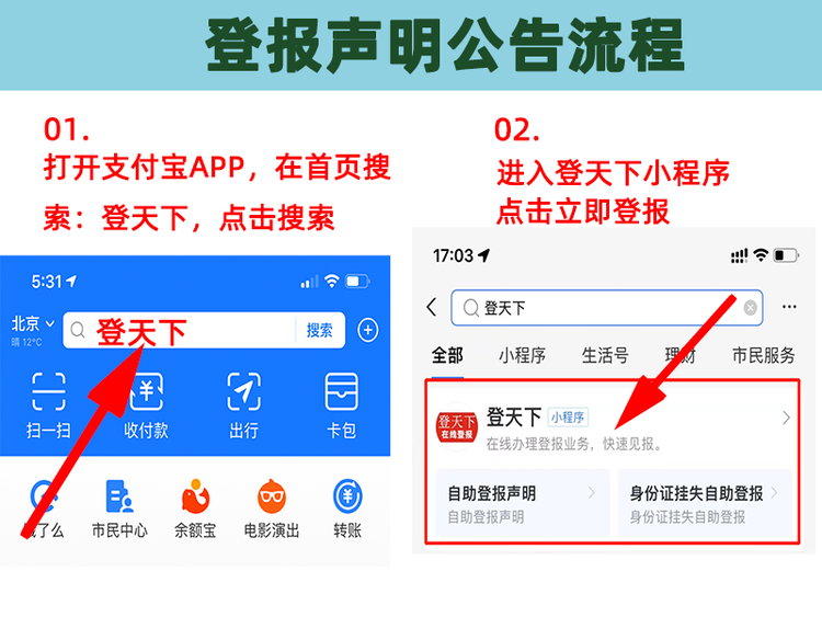 支付寶網(wǎng)上登報步驟: