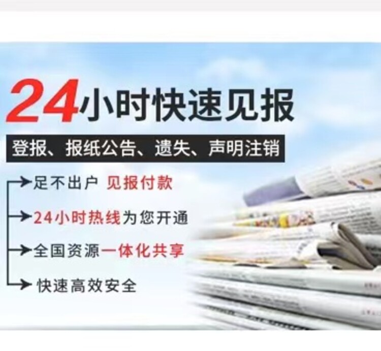 【市場星報】登報咨詢電話:400一8488一780、線上線下同步辦理,報紙登報可以去報刊亭購買也可以郵寄、報業(yè)登報24小時在線辦理證件掛失、施工公告、注銷公告、減資公告、環(huán)評公示、解除公告、聲明登報、遺失登報、公告登報、債權(quán)債務(wù)公告、證件掛失登報辦理怎么收費