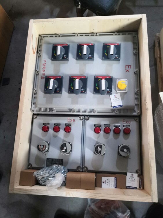 F、所有外露緊固件均采用S304不銹鋼材質(zhì)。 G、電纜進(jìn)出線方向,可根據(jù)用戶要求做成上進(jìn)上出、下進(jìn)下出、上進(jìn)下出、下進(jìn)上出等多種形式。 H、進(jìn)出線口通常采用管螺紋,配置電纜夾緊密封裝置;也可根據(jù)用戶現(xiàn)場要求,制成公制螺紋、NPT等螺紋形式。 I、鋼管、電纜布線均可。 J、箱內(nèi)部導(dǎo)線采用TC接線端子冷壓接,并穿有套管進(jìn)行絕緣處理,接線端子采用帶防松瓦墊緊固,確保電氣性能的穩(wěn)定性,接線端子上有明確的進(jìn)出線編號或標(biāo)識。 K、配電箱內(nèi)裝主要元件為施耐德產(chǎn)品,(開關(guān))小型斷路器為iC65系列、交流接觸器為LC1系列,熱繼電器為LR2系列。其余元件如:電表、指示燈、按鈕、轉(zhuǎn)換開關(guān)等元件;為自制防爆元件,防爆性能及電氣。 M、配電箱內(nèi)裝元件、支路數(shù)可根據(jù)用戶要求配置;戶外的產(chǎn)品可根據(jù)用戶要求配置防雨罩。 L、配電箱安裝方式一般為掛式,特殊要求時可做成立式、座式或配電柜式。 N、電纜配置方式為:動力箱:輸入3P+N+PE/輸出3P+N+PE 照明箱:輸入3P+N+PE/輸出1P+N+PE O、本系列產(chǎn)品經(jīng)鑄造、加工、裝配、檢驗等十余道工序,產(chǎn)品檢驗合格后才允許包裝出廠。 P、產(chǎn)品出廠時配、使用說明書、保險卡、出廠合格證、特殊元件的《使用說明書》等技術(shù)文件。