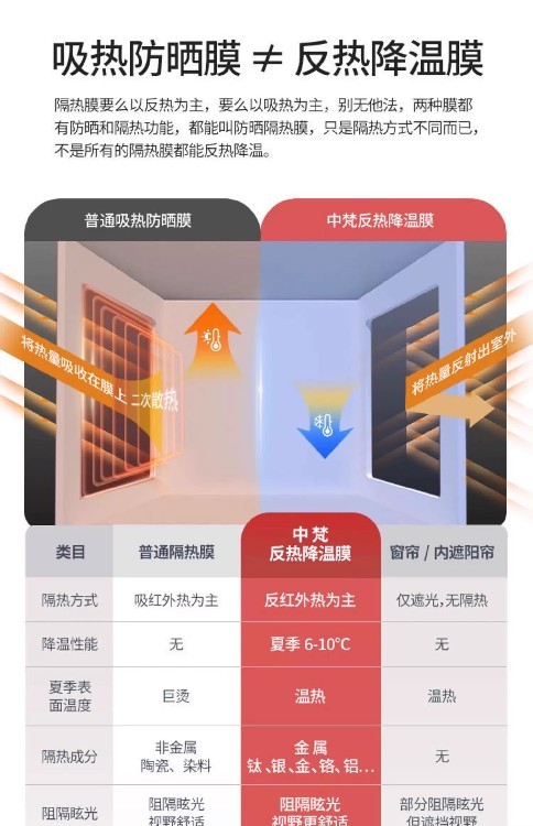 2、反射膜的效果(利用折射原理,將太陽光中的熱量折返回去),不會(huì)使你的玻璃產(chǎn)生高溫。