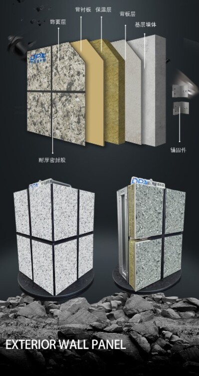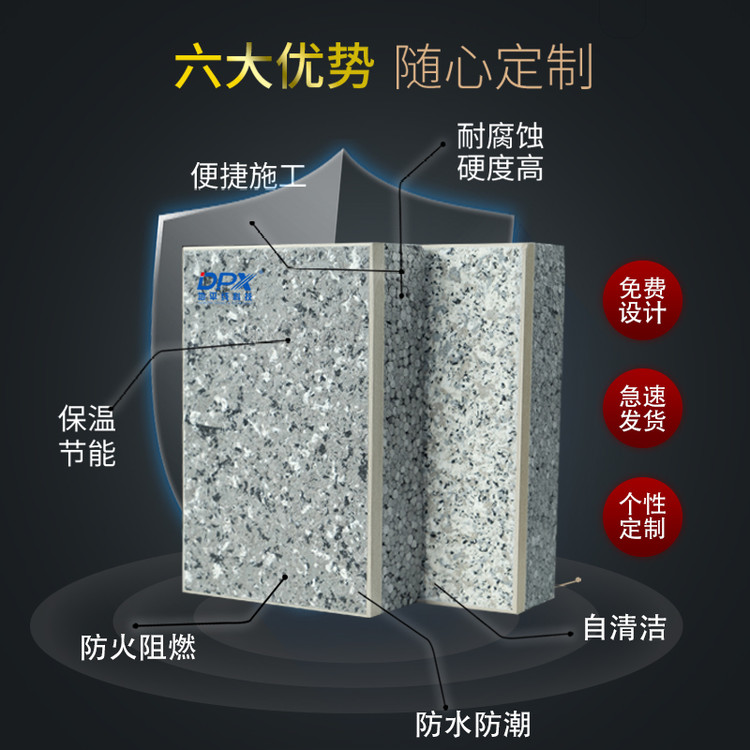 外墻保溫裝飾一體板學(xué)校降噪仿石材防水巖棉板板房