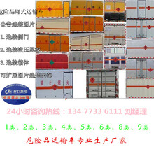 廂式危險品車目前分為三類:一類運輸車(炸雷lei管等),二類廂式運輸車(各類氣體鋼瓶),三類易燃運輸車(類危貨)。針對危貨廂式運輸車的強制性規(guī)定目前已經(jīng)普及,比如車輛采用二類危貨底盤,有前盤碟剎,電子限速,ABS防抱死,排氣制動,鋼絲胎,等要求,客戶可以自己選擇方向助力,駕駛室空調(diào),斷氣剎等等。箱體材料有規(guī)定,外冷軋鋼板,內(nèi)鋁合金蒙面,中間防爆聚氨酯,底部要求有防靜電膠皮,側(cè)壁有通風(fēng)的百葉窗和固定貨物的固定臥環(huán),煙霧器和防盜器都要安裝在箱體頂部。箱體外部一般為灰色,或者白色,并張貼反光帶,危險品類別標(biāo)識牌,箱體配備兩個滅火器,防靜電拖帶。如果是運輸鋼瓶,箱體底板還要特別加固。排氣管要前置。