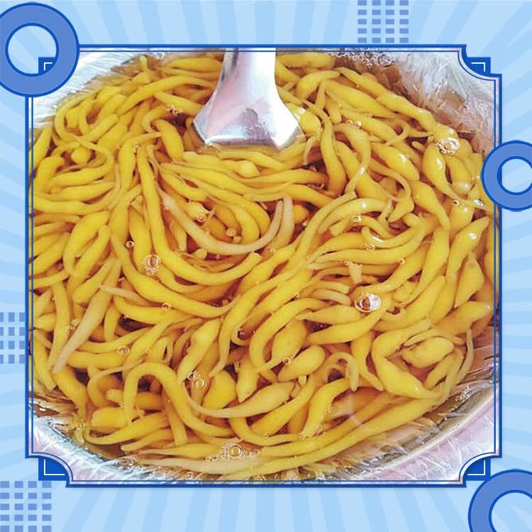 漏魚并非是魚或是跟魚有關(guān)的食物,而是用地瓜粉或土豆粉熟化的半透明狀物,因其長得像小魚而得名 吃時灑榨菜,辣椒油,油炸的花生米,添加熬制的大料水,可以適當?shù)姆糯缀吞撬H肟诰妥闪镆幌禄敫怪?,口感清涼爽滑,四季皆宜?br/>
