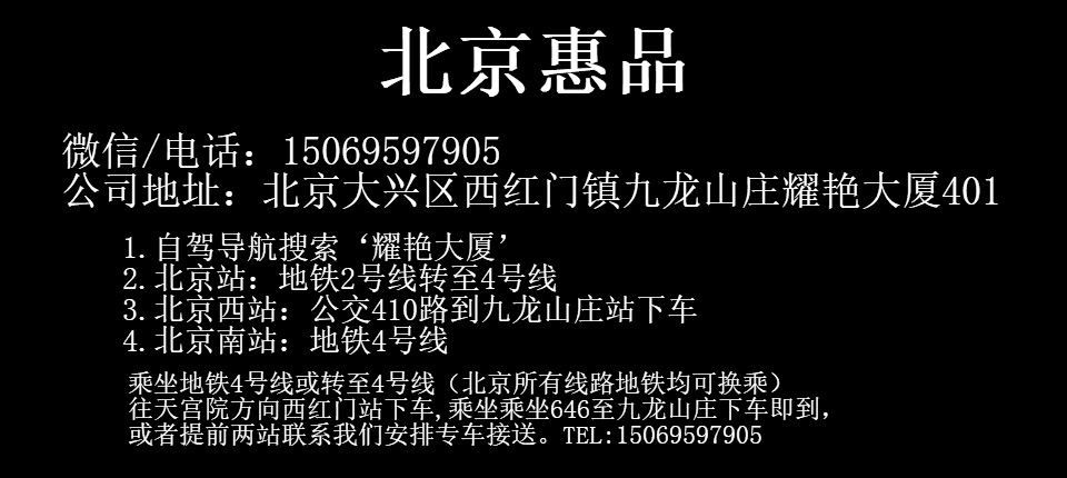 【展廳地址】:北京市大興區(qū)西紅門鎮(zhèn)九龍山莊耀艷大廈401