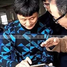 明德國(guó)際代表一行與日本陶藝家長(zhǎng)江惣吉(中)小林仁博士(右)研討曜變盞