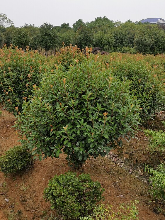 紅葉石楠 (學名:Photinia × fraseri Dress)是薔薇科,石楠屬雜交種,為常綠小喬木或灌木,喬木高可達5米、灌木高可達2米。葉片革質(zhì),長圓形至倒卵狀、披針形,葉端漸尖,葉基楔形,葉緣有帶腺的鋸齒,花多而密,復傘房花序,花白色,梨果黃紅色,5-7月開花,9-10月結(jié)果。